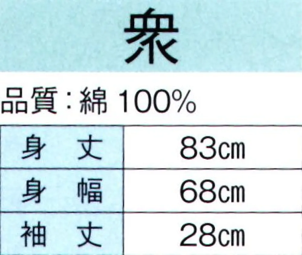 東京ゆかた 60345 特殊染袢天 衆印(顔料染) サイズ・スペック