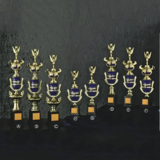 ・ブルー×ゴールドの高級感あるデザインがステージを華やかに演出 ・トロフィー上部の人形は種目に応じて種類を選択可能 ・A〜Hまで豊富なサイズ展開で、用途やランクに合わせて選びやすい ・軽量な樹脂製台座で扱いやすく、安定感のある設計 ・名入れプレート付きで記念に残る表彰品として最適
